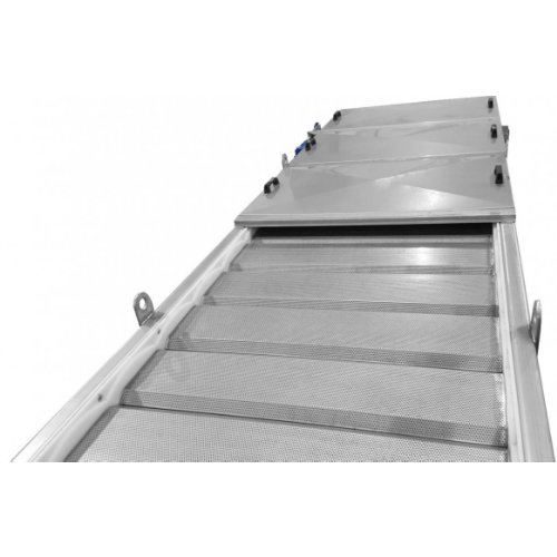 Bu izgaraların plakaları, izgara genişliği boyunca uzanır ve perfore sacdan yapılmıştır. Bu plakalar, bir zincire bağlı olarak hareket eder. Palet yüzeyinde tutulan atıklar, ekipmanın deşarj kısmında bulunan bir fırça sistemi aracılığıyla taşınır. Burada, ızgarayla birlikte çalışan fırça ve basınçlı yıkama tesisatıyla, ızgara yüzeyindeki atıkların dökülüş ağzından atılması sağlanır.